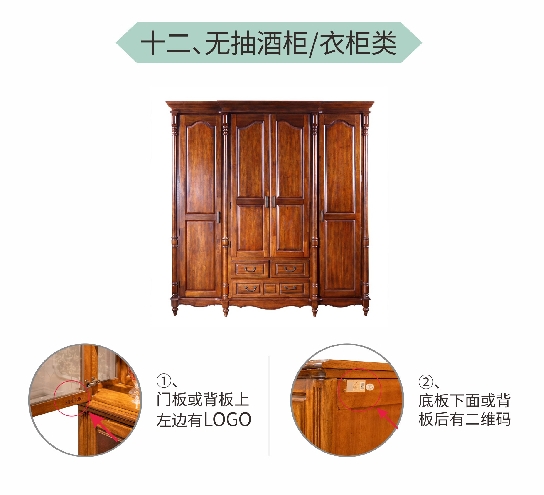 (1)床头下横或者中横左边有LOGO; 床头下横左边有防伪码。